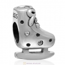 925 Sterling Silver Ski Boot European Charm Bead with Clear Crystal