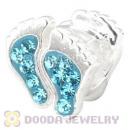 Wings Around 925 Sterling Silver European Charm Bead with Blue Zircon Austrian Crystal