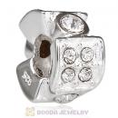 925 Sterling Silver Dice Charm Beads with White Blue and Green Austrian Crystal Wholesale