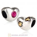 925 Sterling Silver Open Heart Charm Belived Bead with Lt Siam Austrian Crystal
