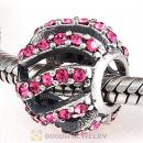 925 Sterling Silver Rose Gold Birthday Cake Charm Bead with Fuchsia Crystal