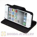 Black Lichee Pattern Credit ID Card Flip Leather Wallet Case For iPhone5