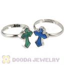 Mix Size Unisex Silver Plated Change Color Cross Finger Ring Wholesale