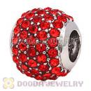Platinum Plated European Light Siam Pave Lights Charm With Light Siam Crystal