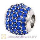 Platinum Plated European Sapphire Pave Lights Charm With Sapphire Crystal