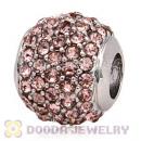 Platinum Plated European Light Peach Pave Lights Charm With Light Peach Crystal