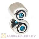 925 Sterling Silver European Tendril Spacer Beads With Aquamarine CZ Stone Wholesale