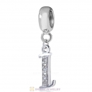 925 Sterling Silver Dangle Letter I Beads with CZ Stone