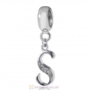 925 Sterling Silver Dangle Letter S Beads with CZ Stone