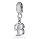 925 Sterling Silver Dangle Letter B Beads with CZ Stone