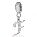925 Sterling Silver Dangle Letter F Beads with CZ Stone