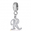 925 Sterling Silver Dangle Letter R Beads with CZ Stone