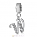 925 Sterling Silver Dangle Letter W Beads with CZ Stone