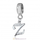 925 Sterling Silver Dangle Letter Z Beads with CZ Stone