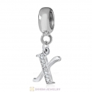 925 Sterling Silver Dangle Letter K Beads with CZ Stone