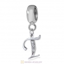 925 Sterling Silver Dangle Letter T Beads with CZ Stone