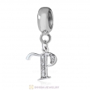 925 Sterling Silver Dangle Letter P Beads with CZ Stone
