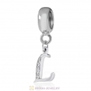 925 Sterling Silver Dangle Letter L Beads with CZ Stone