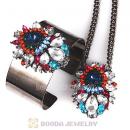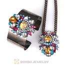 Multi Color Resin Crystal Pendant Necklace and Bangle Set Wholesale