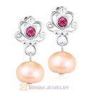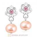 Sterling Silver My Sweet Princess with Light Rose Crystal Dangle Pearl Earrings