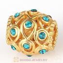 Sterling Silver Gold Plated Ocean Treasures Beads with Blue Zircon Austrian Crystal