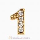 Gold Plated Alloy Number 1 with Crystal Floating Locket Charms Wholesale