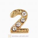Gold Plated Alloy Number 2 with Crystal Floating Locket Charms Wholesale