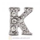 Platinum Plated Alloy Letter K with Crystal Floating Locket Charms Wholesale