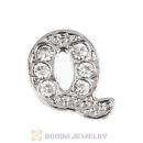 Platinum Plated Alloy Letter Q with Crystal Floating Locket Charms Wholesale