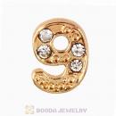 Gold Plated Alloy Number 9 with Crystal Floating Locket Charms Wholesale