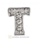 Platinum Plated Alloy Letter T with Crystal Floating Locket Charms Wholesale