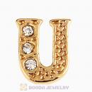 Gold Plated Alloy Letter U with Crystal Floating Locket Charms Wholesale