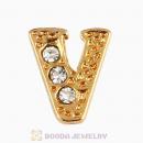 Gold Plated Alloy Letter V with Crystal Floating Locket Charms Wholesale