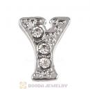 Platinum Plated Alloy Letter Y with Crystal Floating Locket Charms Wholesale