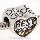 Sterling Silver Gold Plated Love BEST MOM Heart Beads European Style