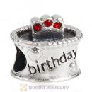 Sterling Silver Happy Birthday Cake Charm Beads with Light Siam Austrian Crystal Wholesale