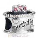 Sterling Silver Birthday Cake Charm Beads with Light Rose Austrian Crystal Wholesale