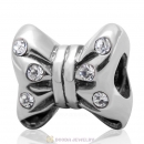 925 Sterling Silver Minnie Bow knot Charm Bead with Lt Siam Crystal