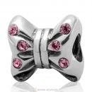925 Sterling Silver Minnie Bow knot Charm Bead with Lt Rose Crystal