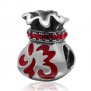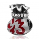 925 Sterling Silver Christmas Bell Charm Bead with Clear Zircon Stones