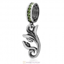 925 Sterling Silver Mother Baby Kissing on Flower with Green Crystal Dangling Charms Bead