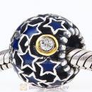 Sterling Silver Gold Plated Night Sky with Blue Stars Enamel Charm and Clear Austrian Crystal