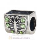 925 Sterling Silver I Love Us Owl Dangle Charm Bead with Emerald Crystal