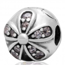 European 925 Sterling Silver Dazzling Daisies with Clear CZ Clip Charm Bead