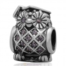 925 Sterling Silver Graduate Owl Charm Bead with Clear CZ and Blue Eye