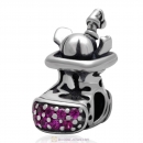 925 Sterling Silver Christmas Boot European Charm Bead with Sparkling Stone