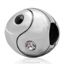 Sterling Silver Ying Yang Charm Bead with Clear Australian Crystal