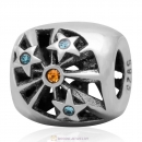 925 Sterling Silver Christmas Snowman Charm Bead with Clear Austrian Crystal