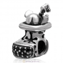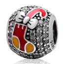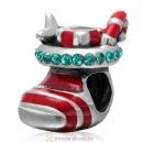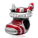 925 Sterling Silver Christmas Boot Charm Bead with Black CZ Stone