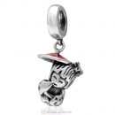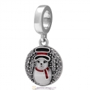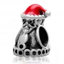 925 Sterling Silver Santa Claus with Christmas Hat Charm Bead with Red Enamel